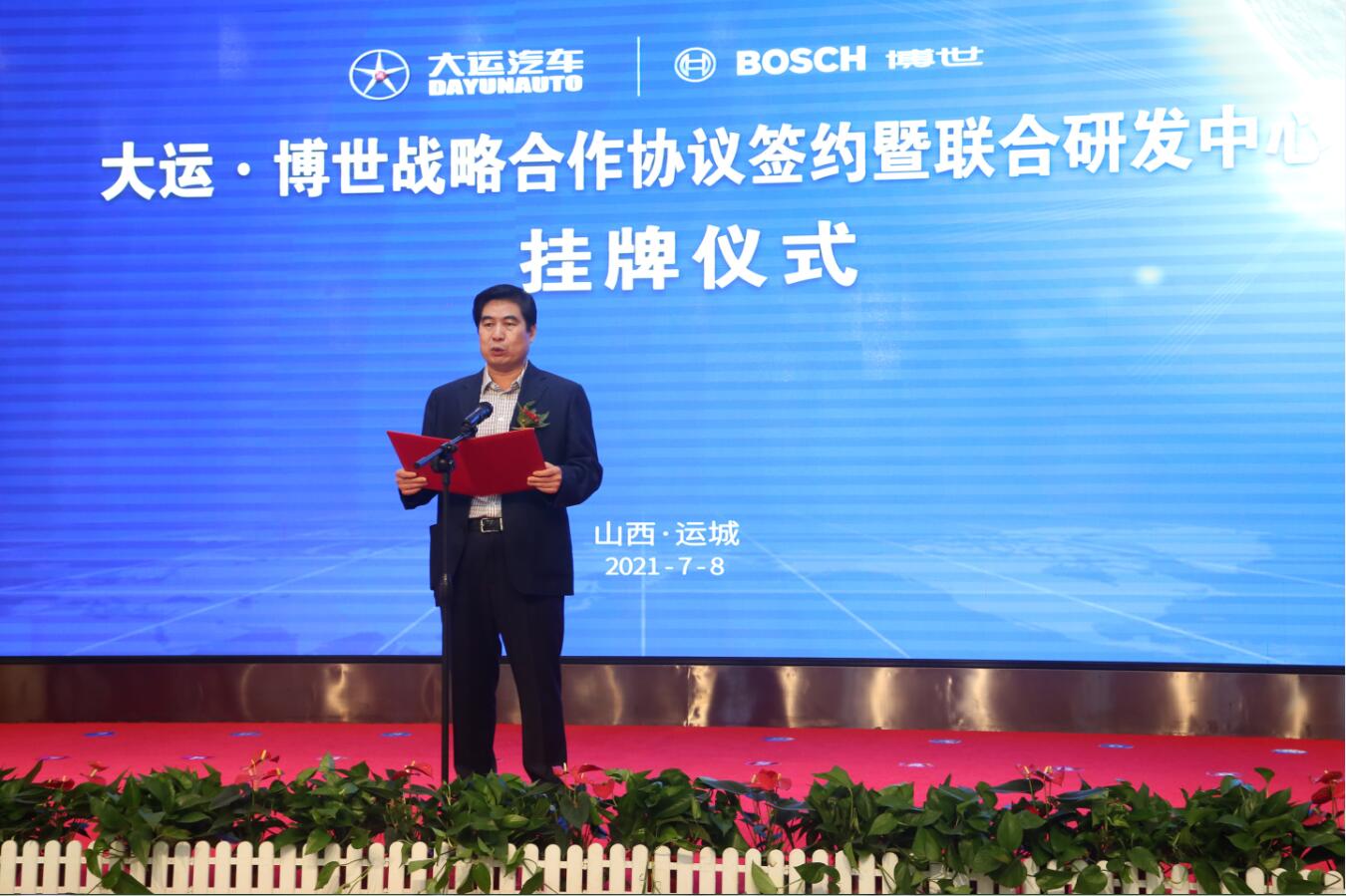 2021年7月8日,和记娱乐官网app汽车股份有限公司与博世(中国)投资有限公司在山西运城签署战略合作协议,双方宣布互为长期战略合作伙伴,共建联合研发中心。该中心致力于在“一体化底盘、自动驾驶、智能网联、智慧交通、汽车电控系统”等领域展开重点合作。运城市市长储祥好、山西省科技厅副厅长牛青山以及省、市科技、工信、发改等部门,运城经济技术开发区、和记娱乐官网app汽车股份有限公司、博世(中国)投资有限公司相关负责人,中央及地方专业媒体共同见证了双方的战略合作协议签约暨联合研发中心挂牌仪式。