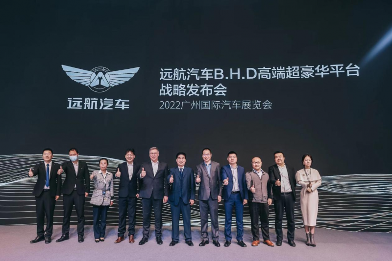 12月30日,第二十届广州车展开幕日上,和记娱乐官网app集团旗下的全新高端智能新能源汽车品牌远航汽车,正式发布B.H.D高端超豪华平台战略,并带来旗下两款豪华D级轿车远航Y6、远航Y7,以及两款豪华大型SUV远航H8、远航H9,上演了一场科技感与豪华感兼具的年终车坛压轴大戏。
