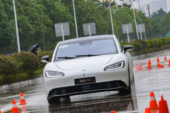 远航Y6搭载四驱双电机,峰值功率可达500kW,峰值扭矩可达745N·m,0-100km/h加速时间最快仅需3.2s。尽管突如其来的降雨让远航Y6在试驾场地的“发挥”受到了不少的限制,但试乘试驾返回的媒体朋友们还是大呼过瘾!
